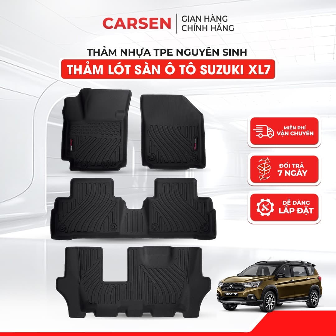 Thảm lót sàn ô tô TPE Suzuki XL7 2019-2024 có kích thước chuẩn cho từng năm sản xuất. Quý khách chỉ cần yêu cầu cụ thể như thảm ô tô Suzuki XL7 đời xe 2020 hay thảm trải sàn ô tô Suzuki XL7 2021, Carsen sẽ có sản phẩm phù hợp.