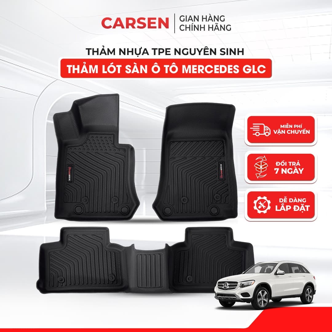 Thảm lót sàn xe ô tô GLC nhựa TPE tại Việt Nam đã và đang có nhiều thương hiệu sản xuất. Nhưng thảm trải sàn ô tô Mercedes GLC 2016-2022 thương hiệu Carsen tự tin sở hữu nhiều lợi ích vượt trội đem đến cho khách hàng sử dụng.